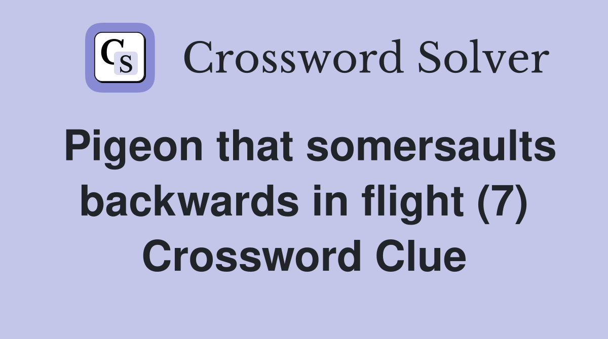 Pigeon that somersaults backwards in flight (7) Crossword Clue