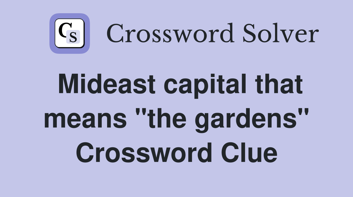 Mideast capital that means quot the gardens quot Crossword Clue Answers