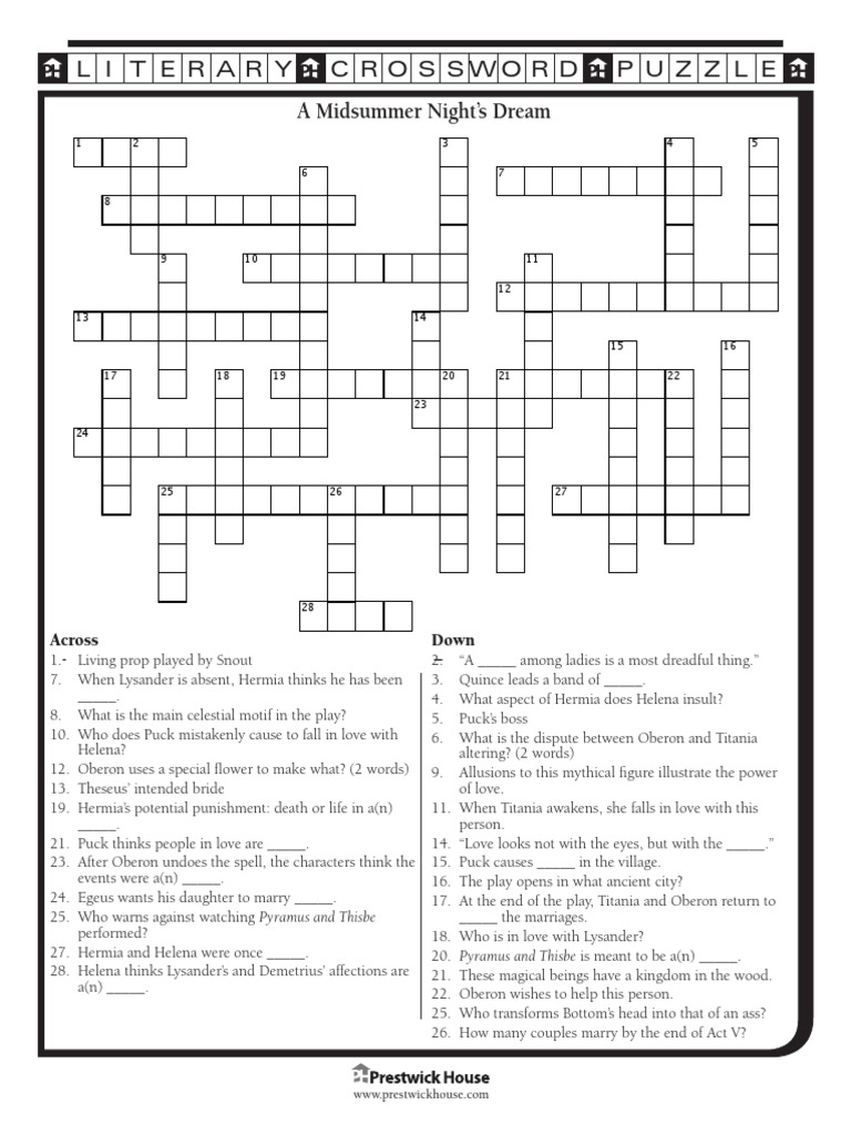 Midsummer Nights Dream Crossword Puzzle WordMint