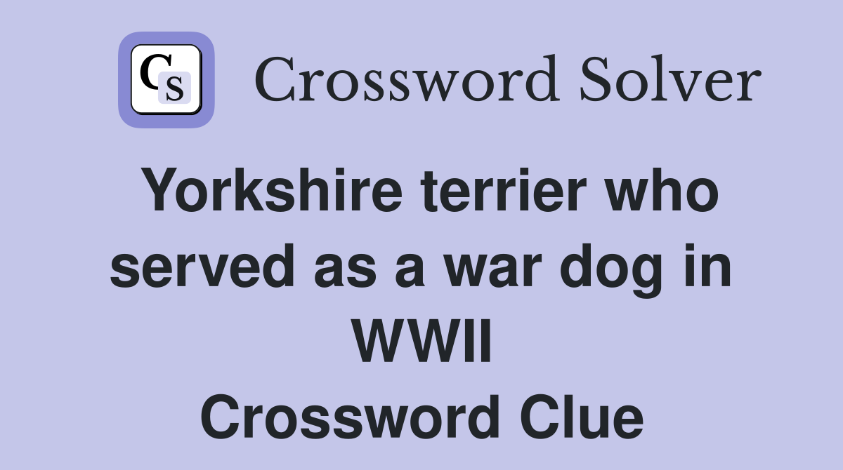 Yorkshire terrier who served as a war dog in WWII Crossword Clue