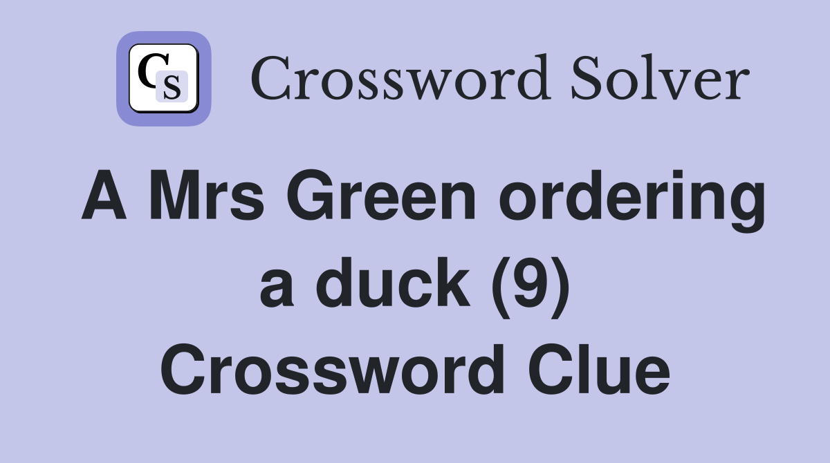 A Mrs Green ordering a duck (9) Crossword Clue Answers Crossword Solver