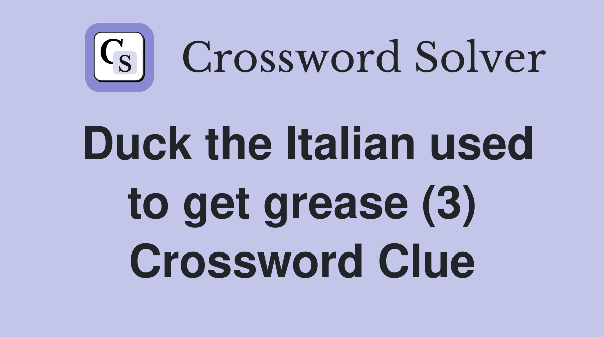 Duck the Italian used to get grease (3) Crossword Clue Answers