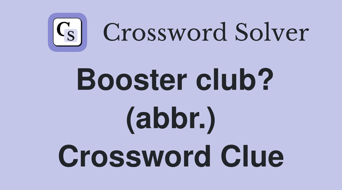 Booster club? (abbr ) Crossword Clue Answers Crossword Solver