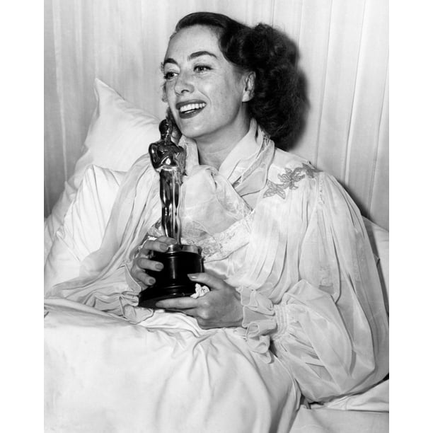 Joan Crawford in bed with her MILDRED PIERCE Oscar March 7 1946 Stock