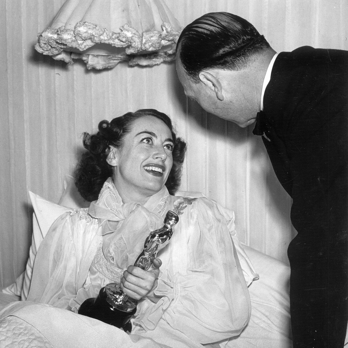 Joan Crawford left in bed with her MILDRED PIERCE Oscar and director