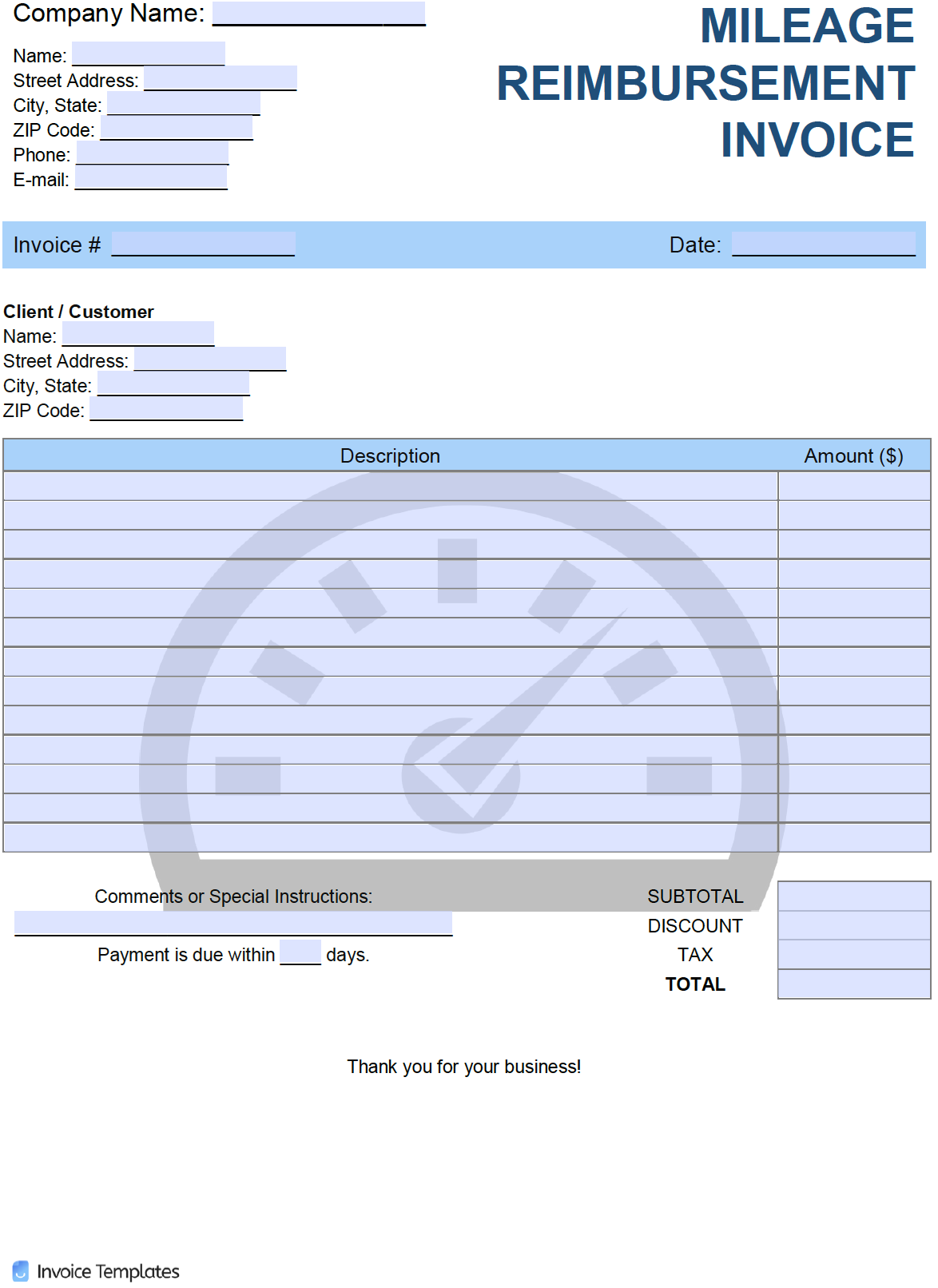 Mileage Reimbursement Form Templates Invoice example Mileage