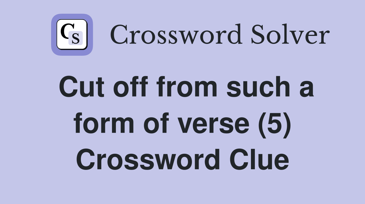 Cut off from such a form of verse (5) Crossword Clue Answers