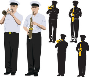 Military band member in parade uniform playing Vector Image
