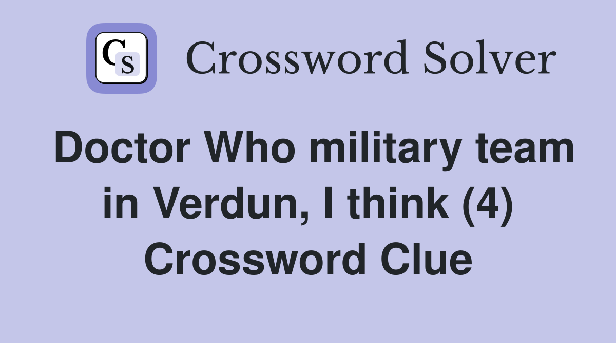 Doctor Who military team in Verdun I think (4) Crossword Clue