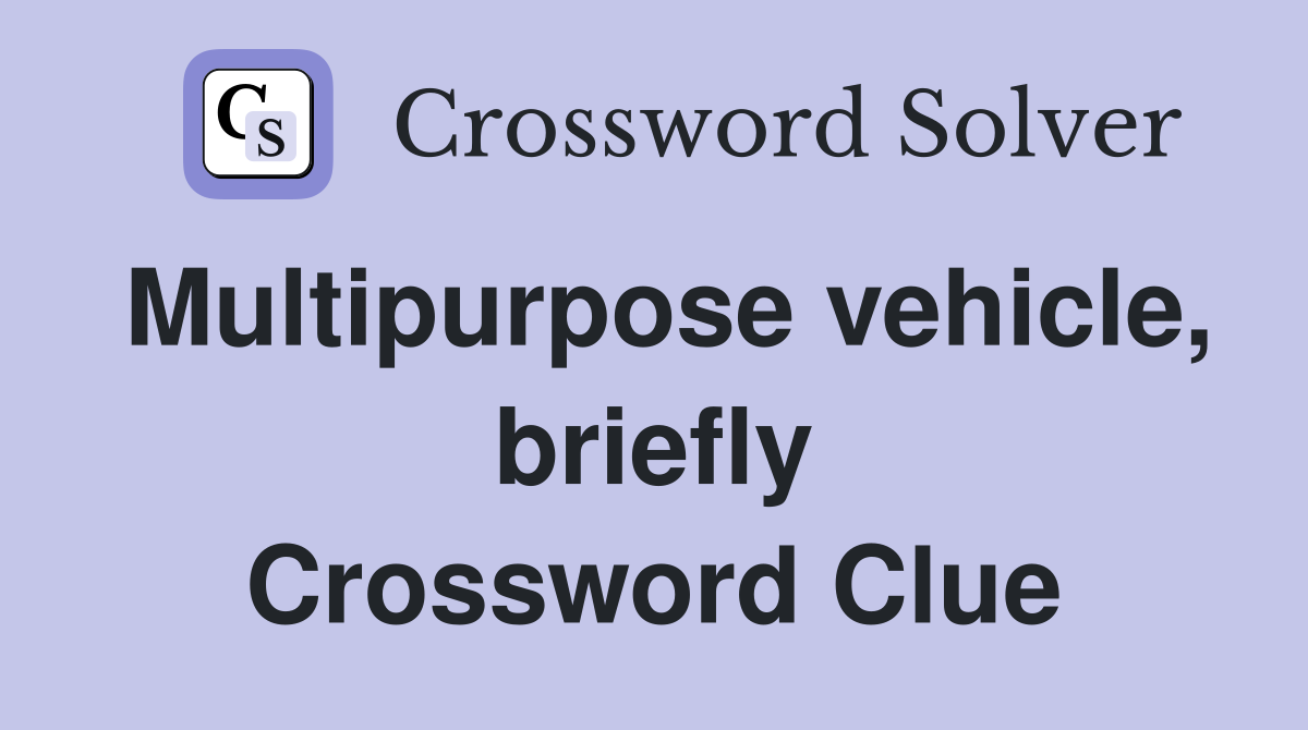 Multipurpose vehicle briefly Crossword Clue Answers Crossword Solver