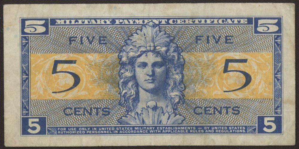 Series 521 Military Payment Certificate Five Cents 1952 Korean War