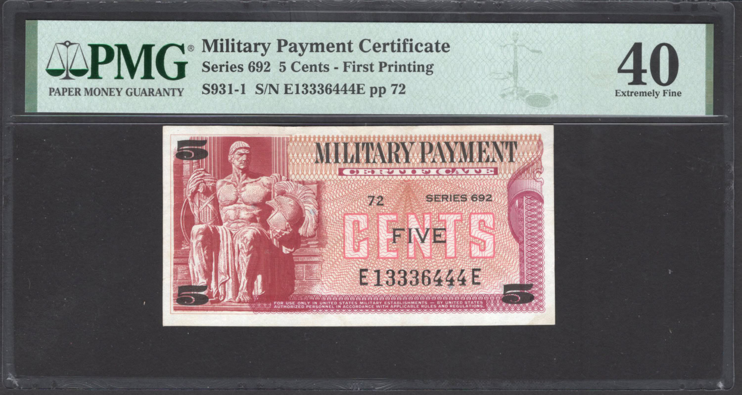 SERIES 692 US MILITARY 5 CENT PAYMENT CERTIFICATE