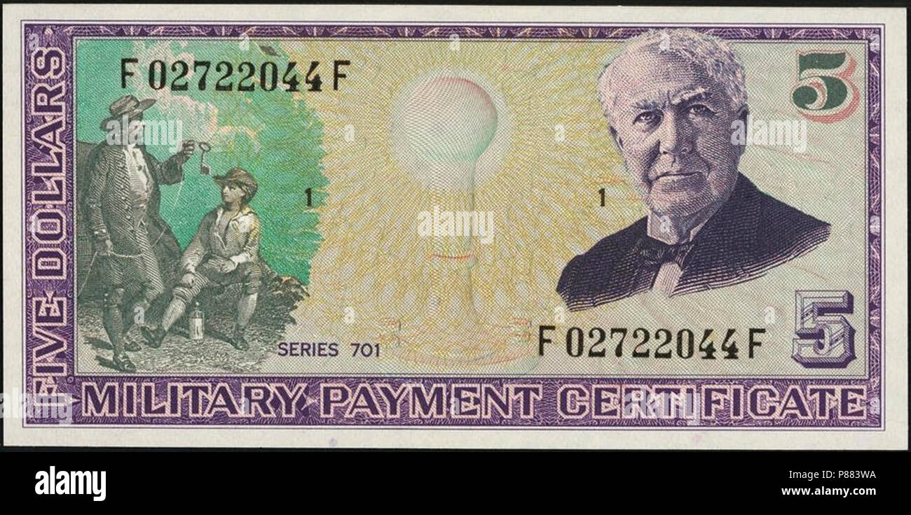 5 Dollars Military Payment Certificates Series 701 Stock Photo Alamy
