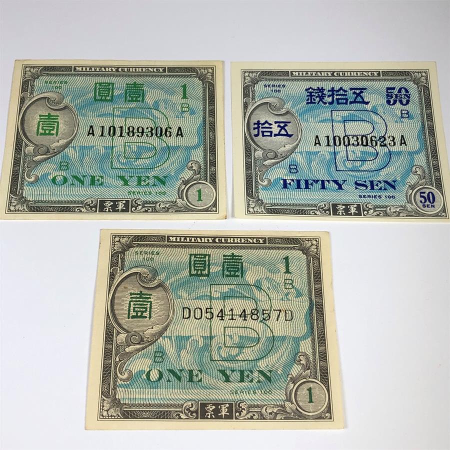 Lot of Three WWII Military Payment Certificates*Issued in Japan*50 Sen