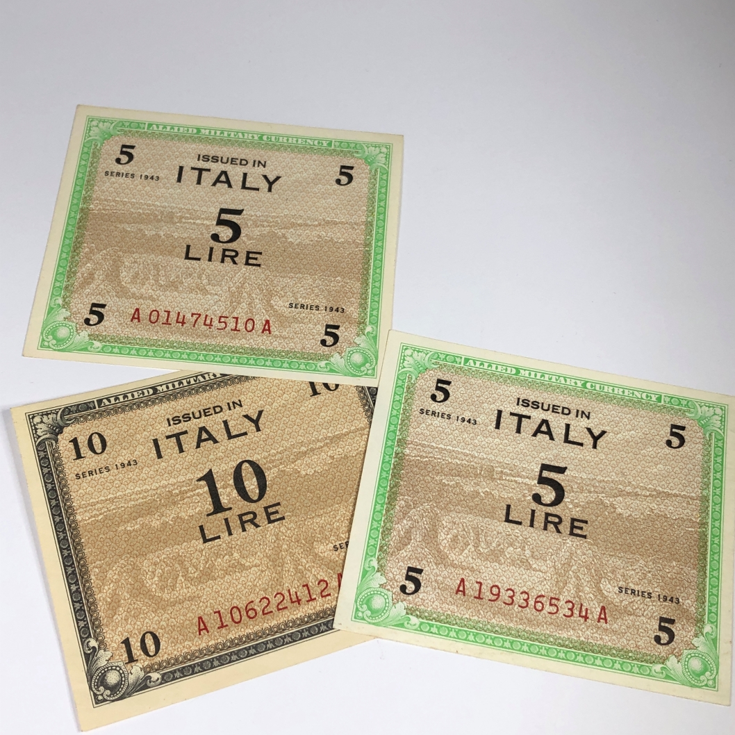 Lot of Three WWII Military Payment Certificates*Issued in Italy*10 Lire