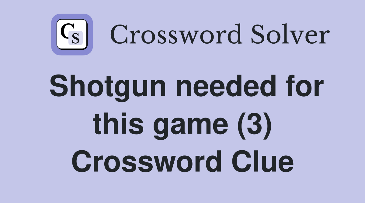 Shotgun needed for this game (3) Crossword Clue Answers Crossword