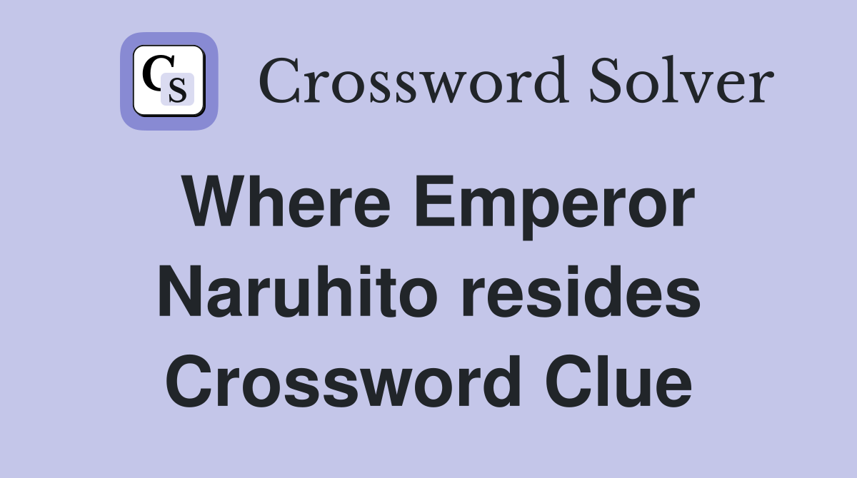 Where Emperor Naruhito resides Crossword Clue Answers Crossword Solver