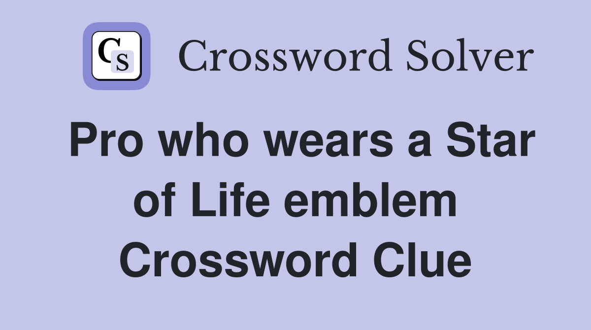 Pro who wears a Star of Life emblem Crossword Clue Answers