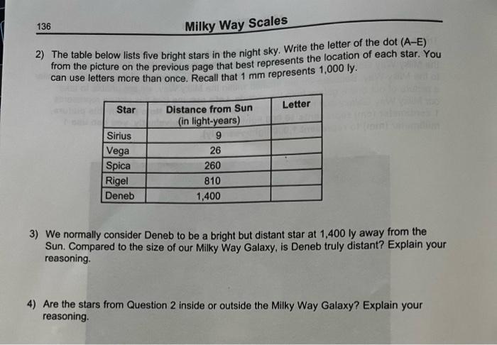 Solved 136 Milky Way Scales 2) The table below lists five Chegg com