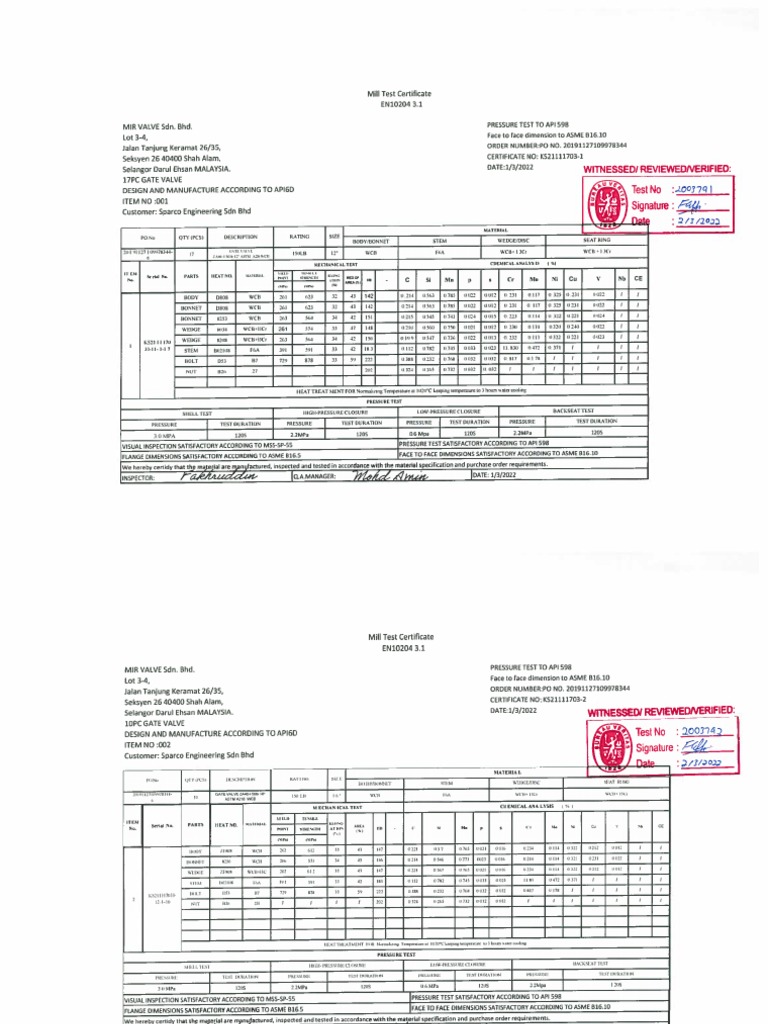 Mill Test Certificate
