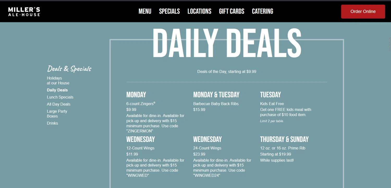 Millers Ale House February 2025 Coupons and Promo Codes 🛒