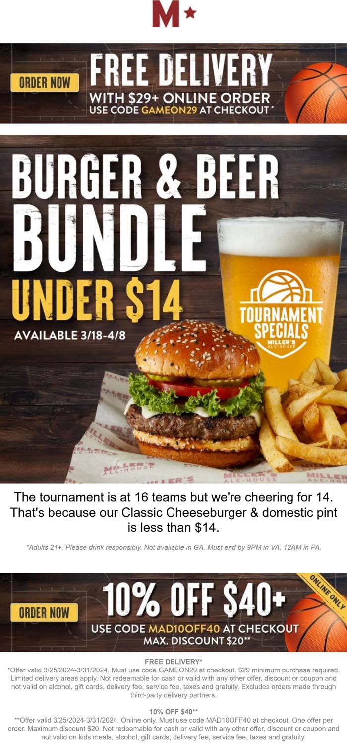 Millers Ale House March 2025 Coupons and Promo Codes 🛒