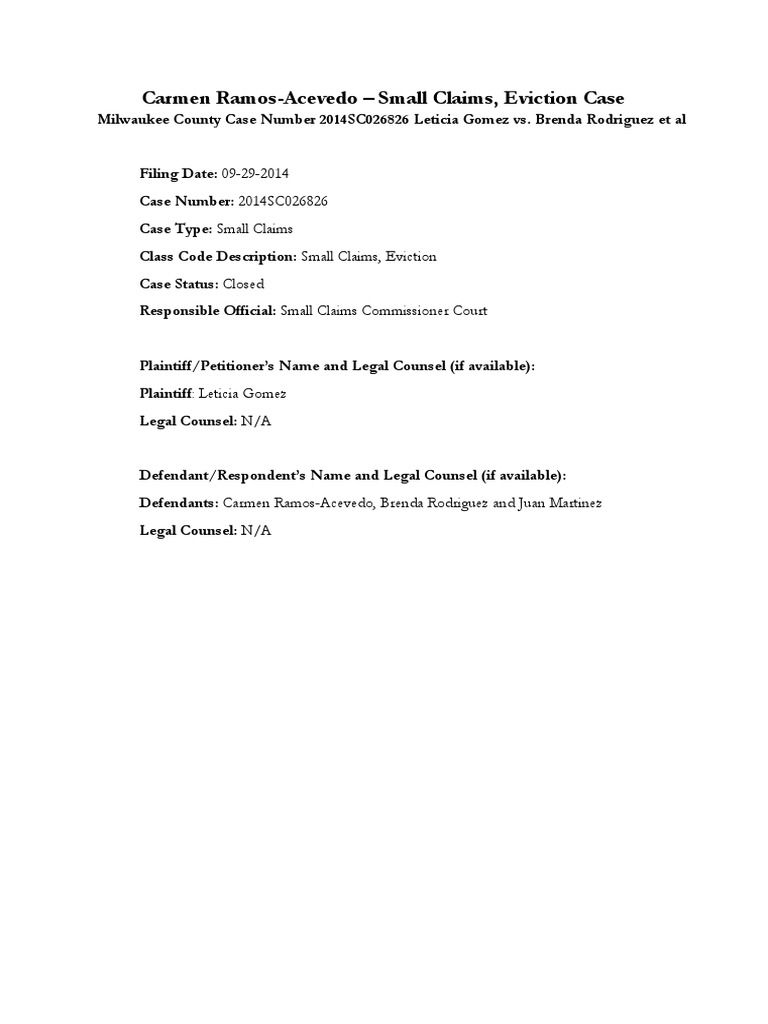 Milwaukee Small Claims Case 2014SC026826 Leticia Gomez vs Brenda