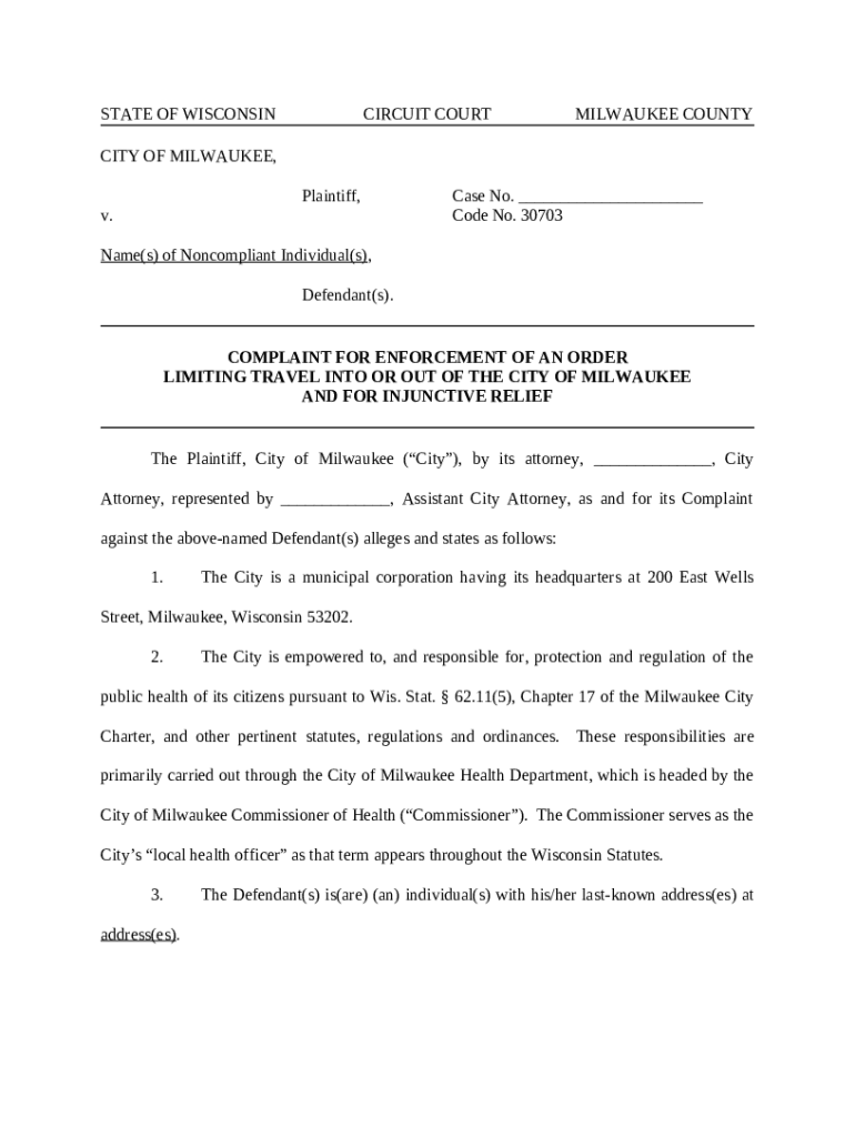 Fillable Small Claims State Of Wisconsin Circuit Court Milwaukee