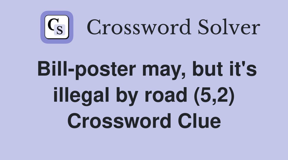 Bill poster may but it #39 s illegal by road (5 2) Crossword Clue
