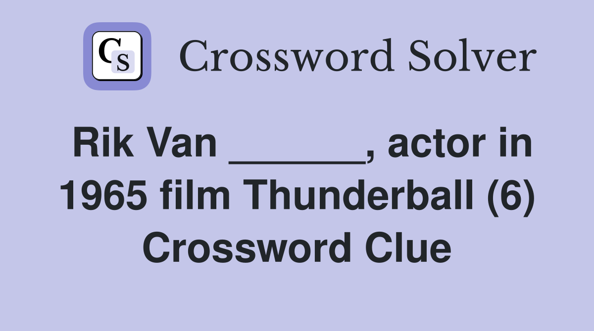 Rik Van actor in 1965 film Thunderball (6) Crossword Clue
