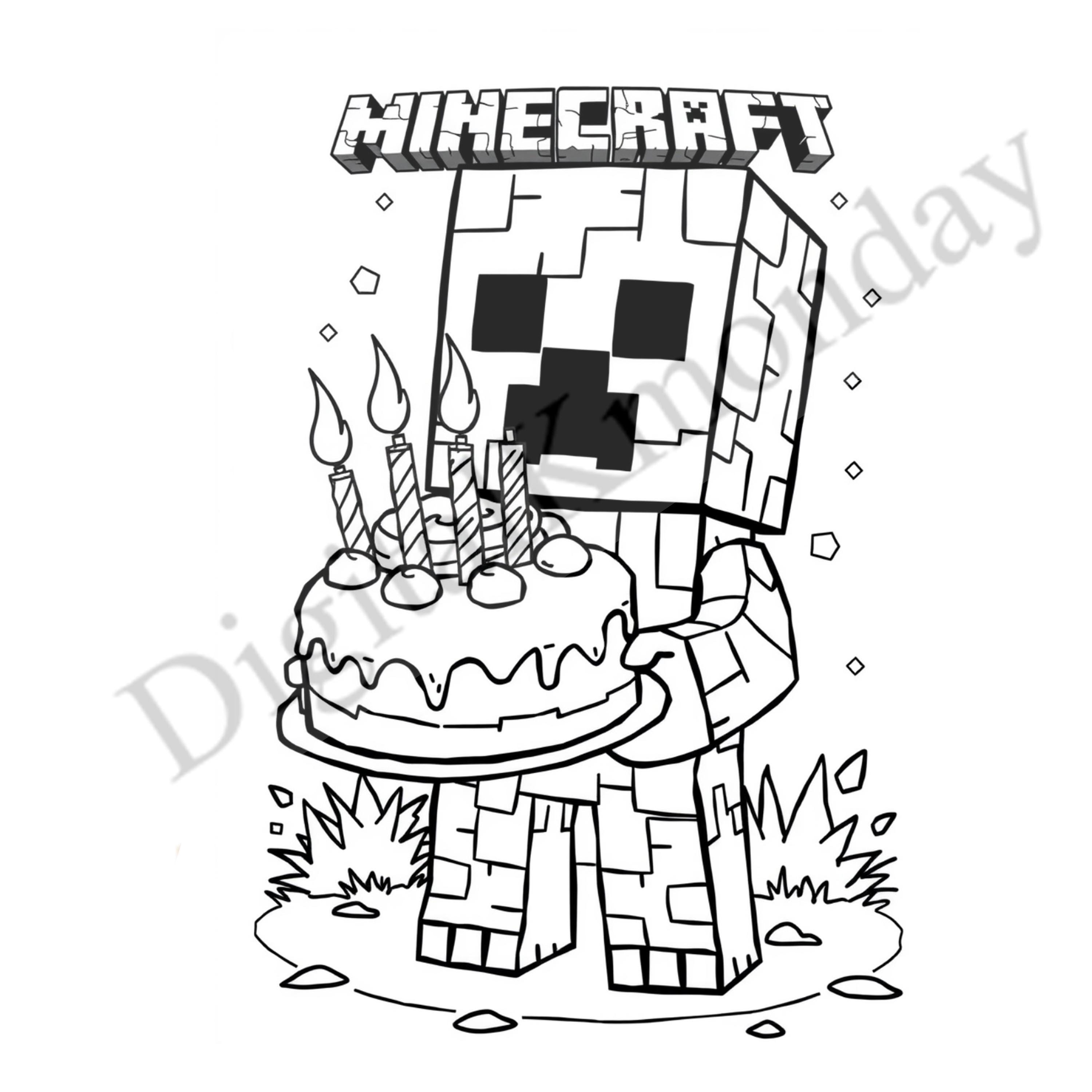 Minecraft birthday card Printable Minecraft coloring Etsy
