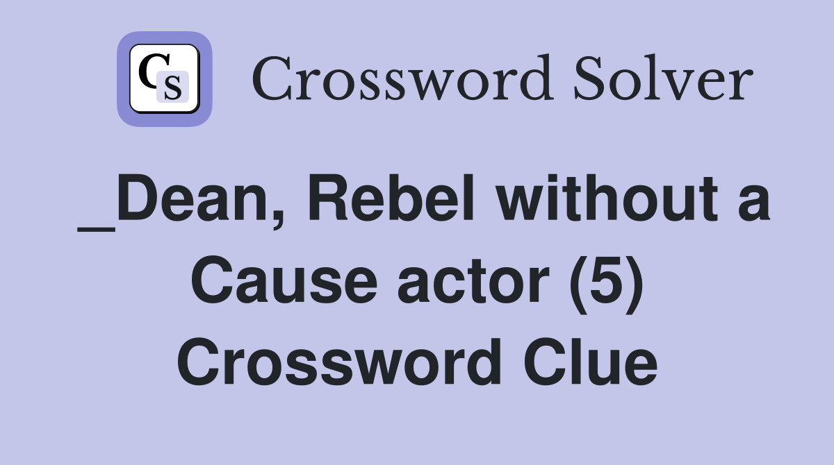 Dean Rebel without a Cause actor (5) Crossword Clue Answers