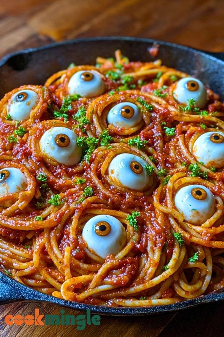 Bloody Spaghetti with Mozzarella Eyeballs Cook Mingle