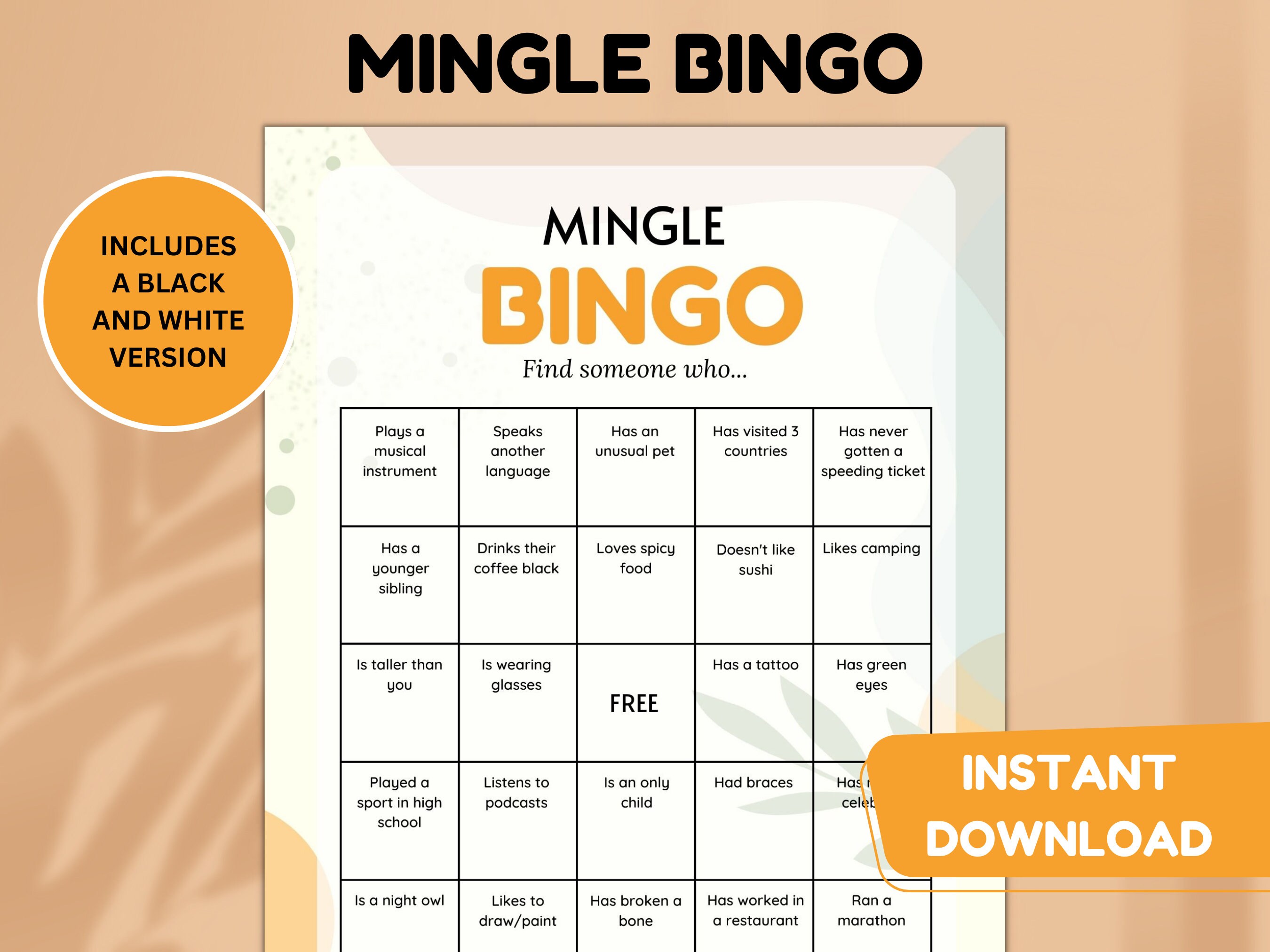 Mingle Bingo Networking Bingo Game Workplace Bingo Work Bingo Etsy