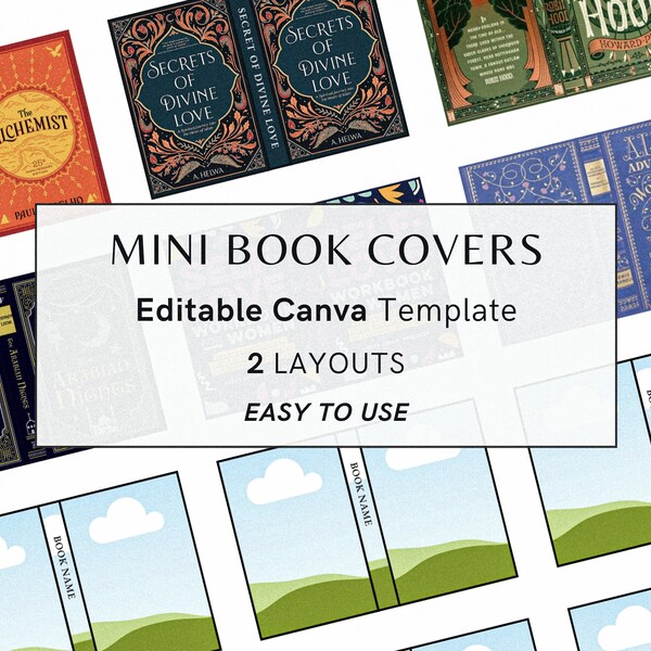 Mini book Cover Template Editable Canva File for Book Cover Front Back