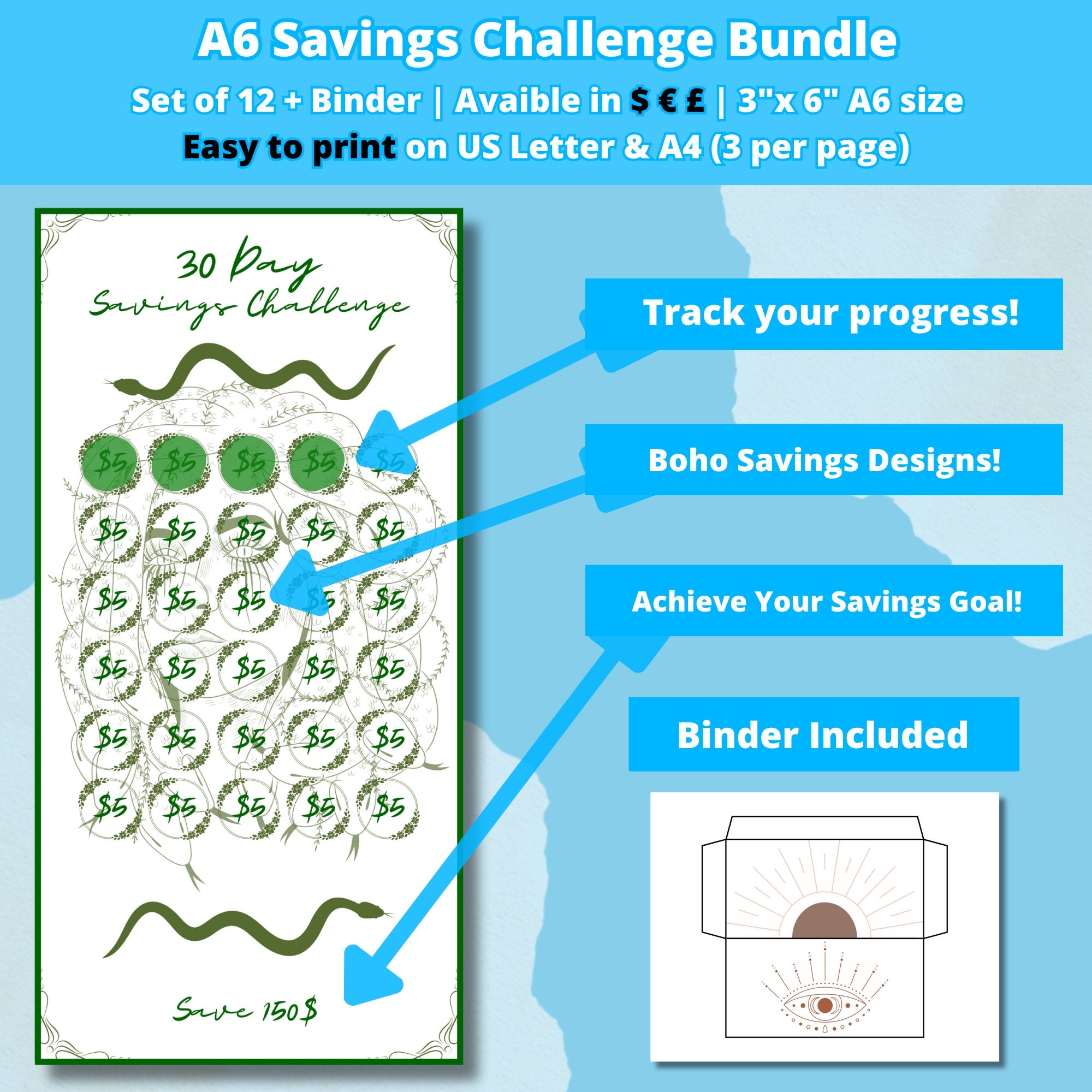 Mini Savings Challenge Printable Savings Tracker Bundle A6 Cash