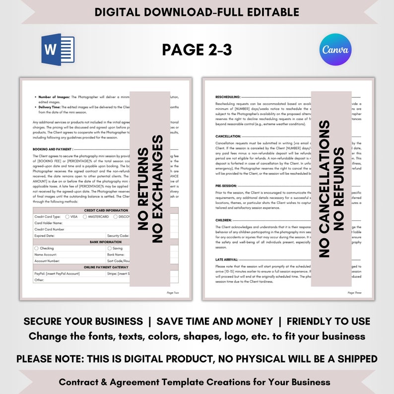 Photography Mini Session Contract Canva Template EDITABLE Photography