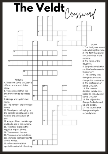The Veldt by Ray Bradbury Crossword Review Activity: No Prep Minimal