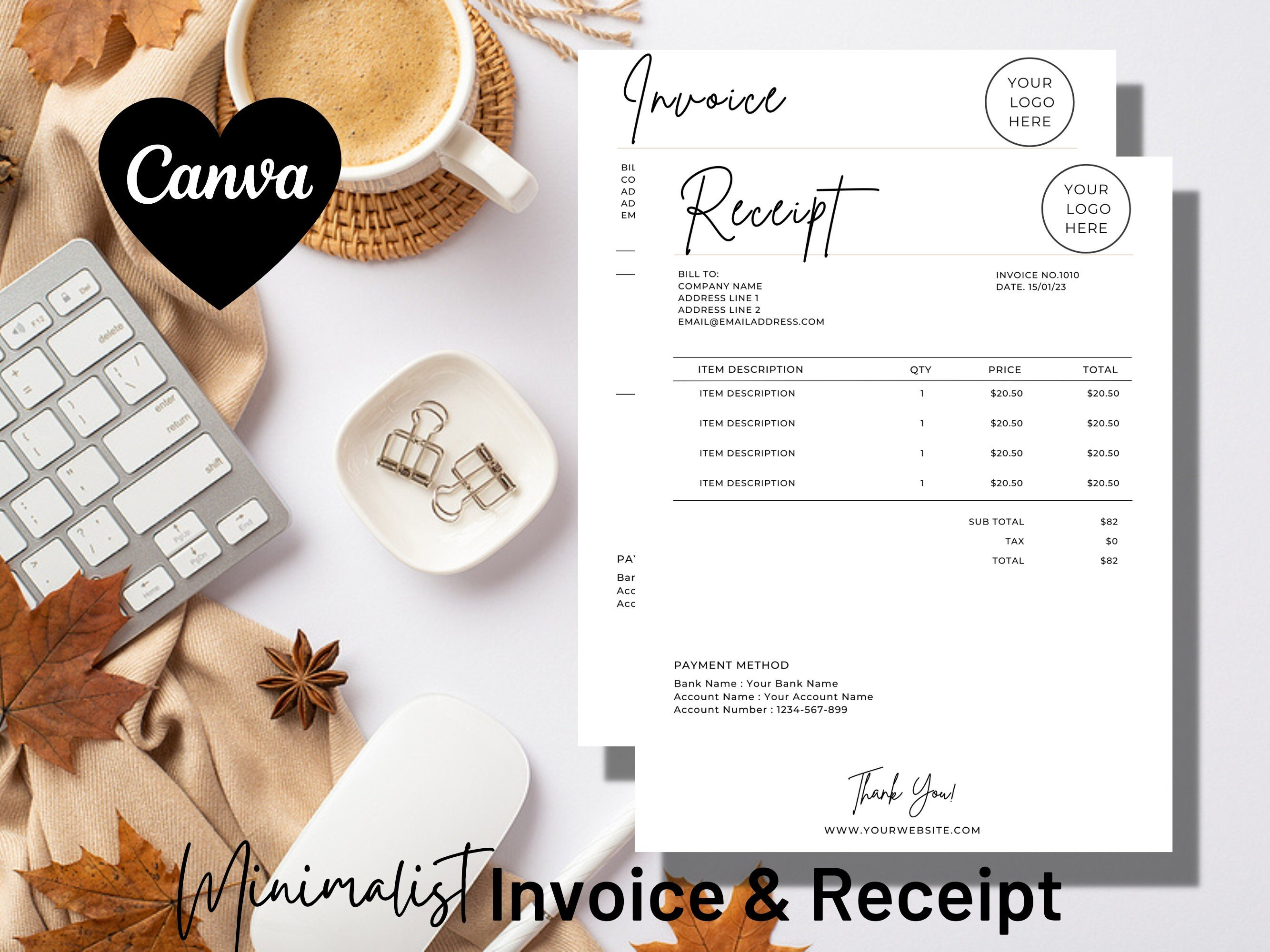 Minimalist Invoice Template Receipt Template Invoice Etsy Australia