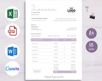 Minimalist Invoice Template for Microsoft Word Editable Small Business