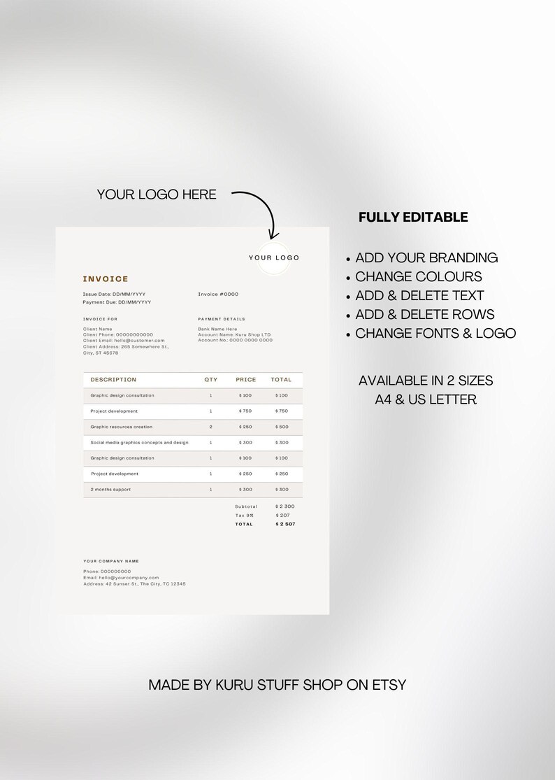 Minimalist Invoice Template Printable Invoice Template Etsy