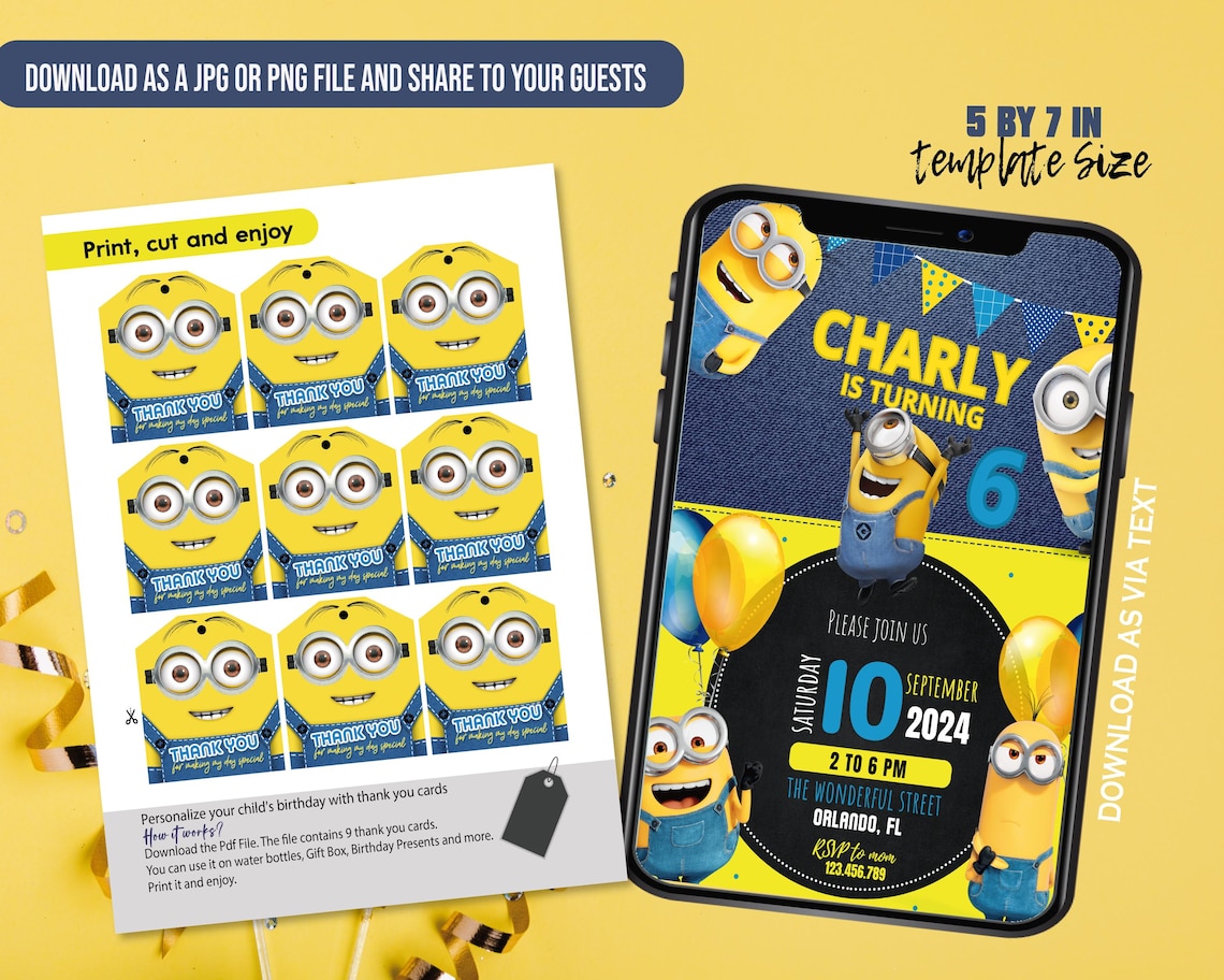 Editable Minions Birthday Invitation Boy Girl Digital Invitation Canva