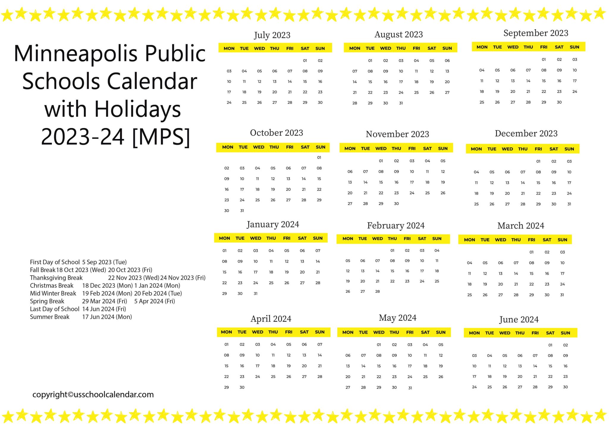 Minneapolis Public Schools Calendar Holidays 2023 2024 School