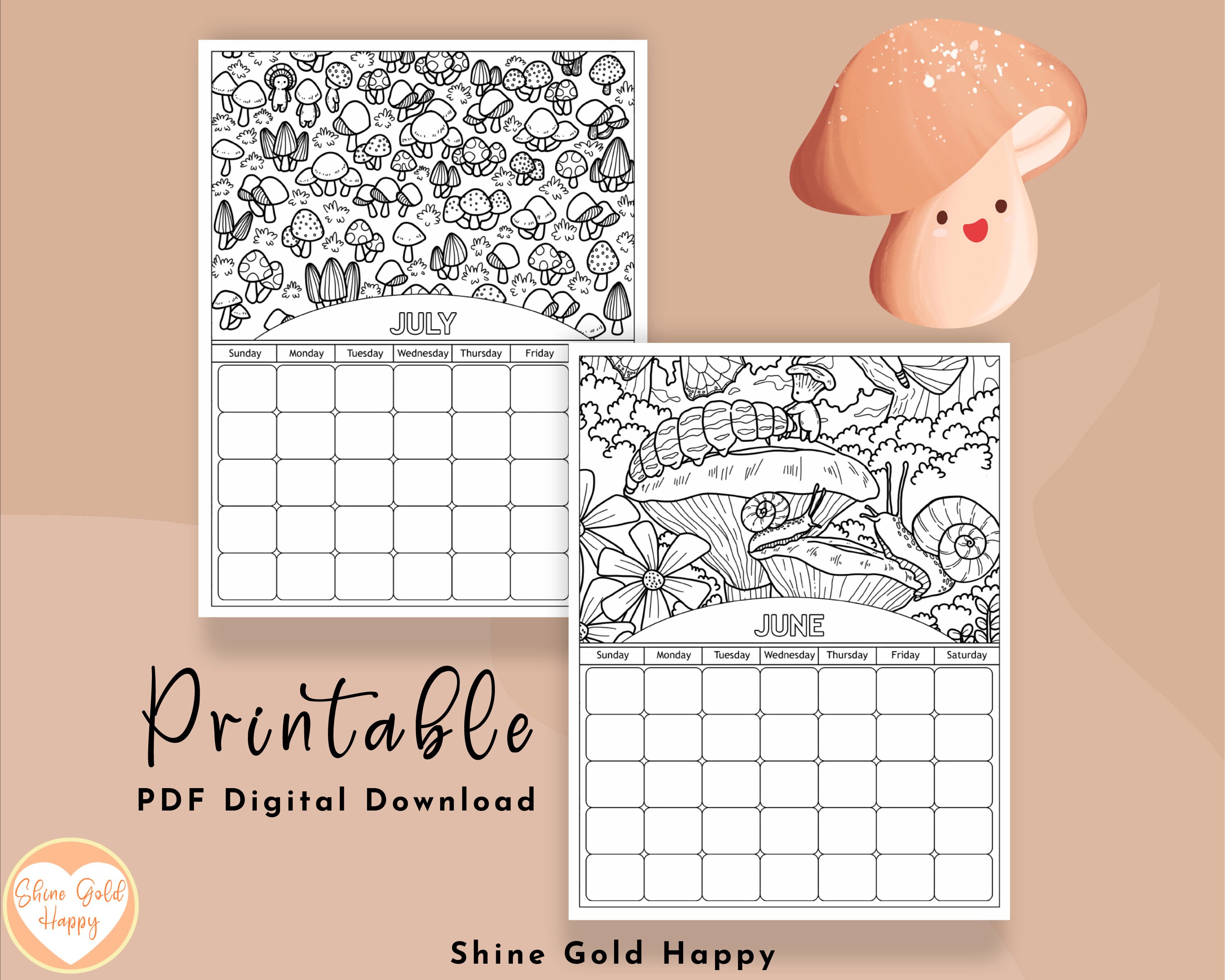 Undated Mushroom Calendar Printable Calendar PDF Digital Download
