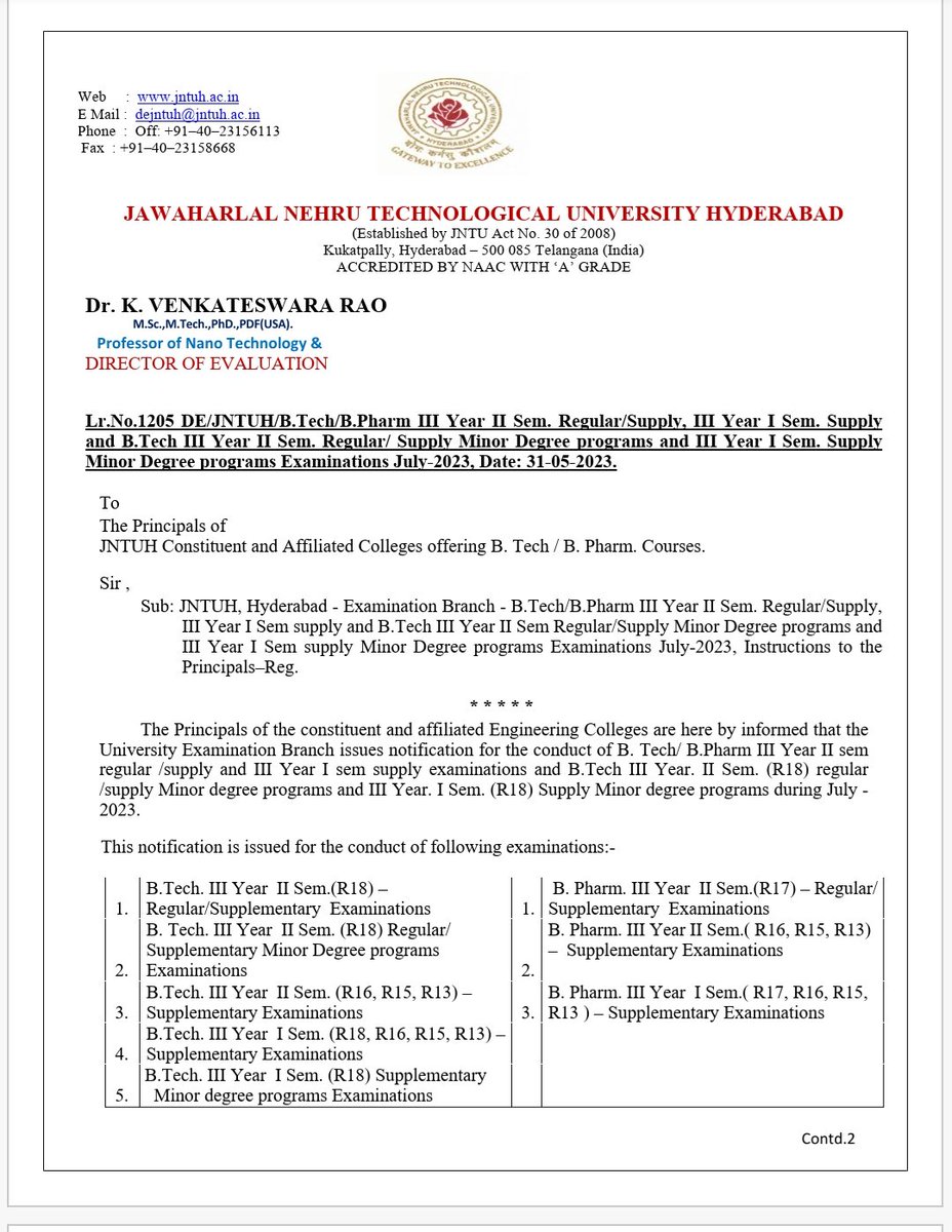 Jntuh Updates on Twitter: quot Notification for http://B Tech/B Pharm III