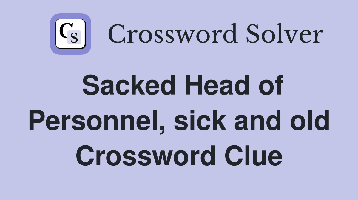 Sacked Head of Personnel sick and old Crossword Clue Answers