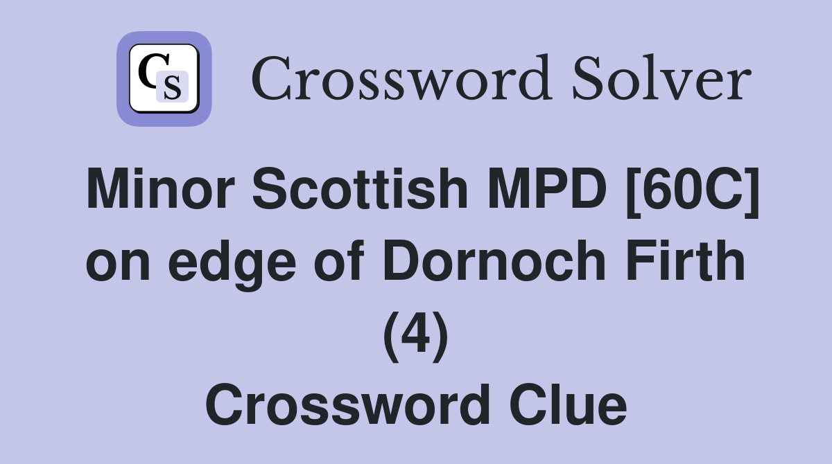 Minor Scottish MPD 60C on edge of Dornoch Firth (4) Crossword Clue