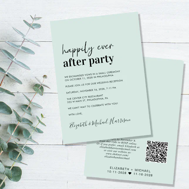 Minimal Modern QR Code Mint Wedding Reception Invitation Zazzle