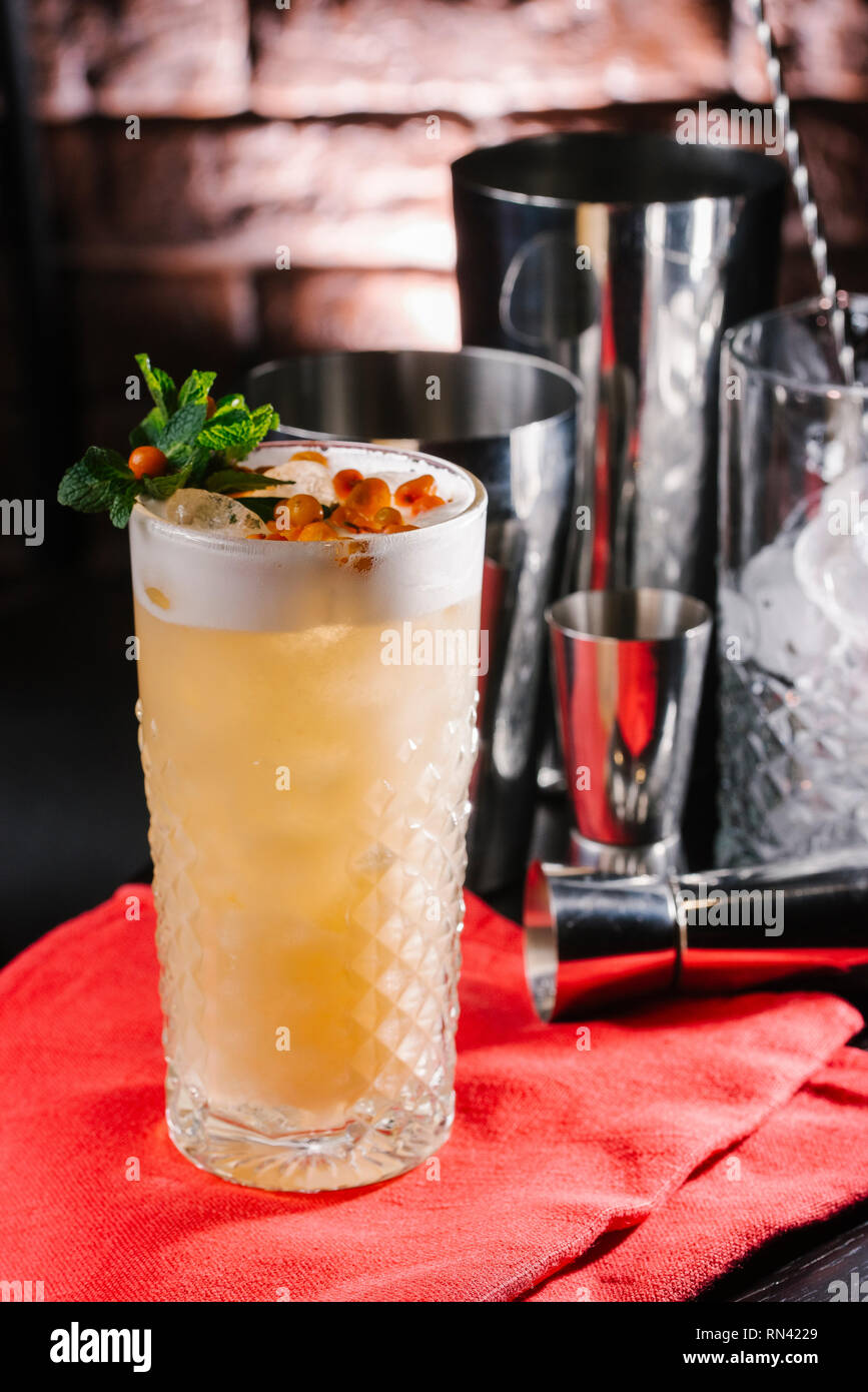 Premium Photo Cocktail with mint cocktail with strawberry and mint
