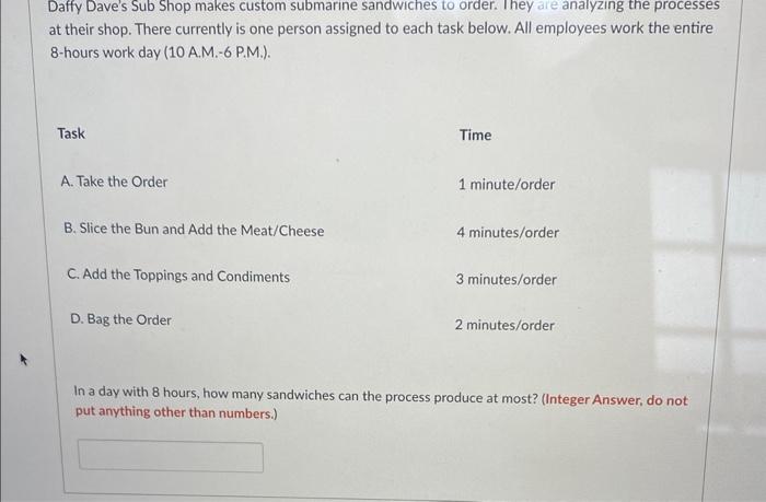 Solved Daffy Dave #39 s Sub Shop makes custom submarine Chegg com